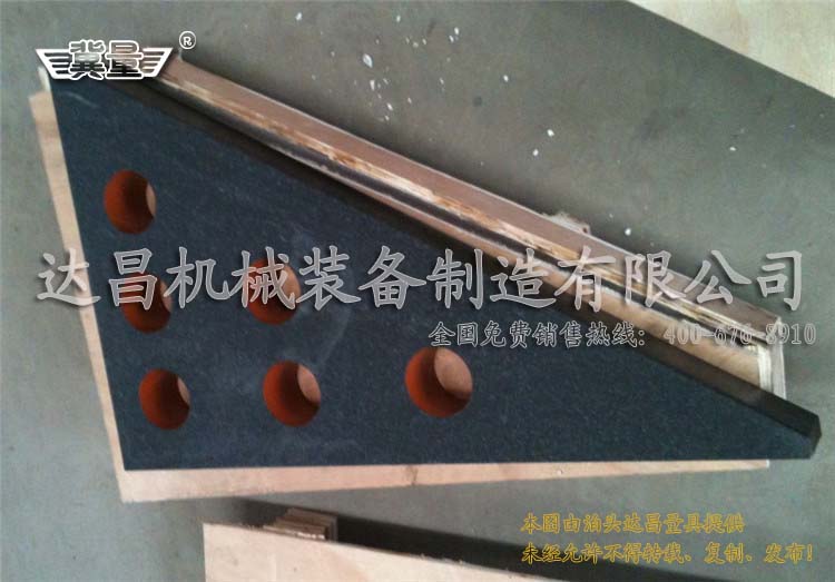 大理石直角尺是三角形的,加工好的產品上面還帶有減輕重量的小孔,而且比較薄,像1000*630的一個直角尺厚度只有80mm,運輸時候必需要小心磕碰,不然可能就會出問題,所以在大理石直角尺的包裝就需要十分小心了。